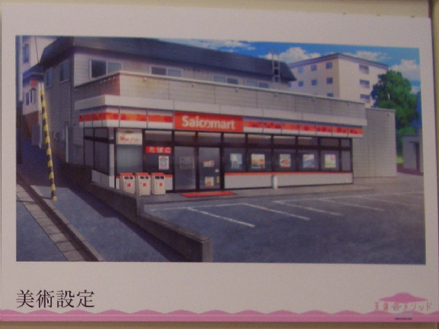 | せっかく「天体のメソッド」の各キャラクターが夏の洞爺湖を紹介するポスターが作られていたにも関わらず、 6月の「洞爺湖マンガアニメフェスタ」が終わった後は、地元では「そらメソ」の宣伝が一切行われていませんでした。 放送日当日(10月5日)午前11時、 いくら何でも、手書きチラシの一枚くらいは掲示物があるのではと、洞爺湖観光協会に行ってきましたが、 …見事に何もありませんでした。 第1話放送数日後の10月10日夜、「そらメソ」公式ホームページを見ていて、 「そらメソ」公式ツイッターの記事の紹介に、現場の写真付きで、 「本日より洞爺湖観光情報センター2Fにて当作品の資料を展示させていただいております。」 とありました。 あ?記事掲載日時、10月5日19:24? なんと、私が帰った後に展示されたようです。 この瞬間、…イスから落ちました。 気を取り直して、早速翌日、午前中に現地視察を実施しました。 展示は、洞爺湖マンガアニメフェスタの時の展示場所と同じところです。 ![]() フェスタの時には、「乃々香」「こはる」「ノエル」の3人だけでしたが、 今回は秋葉原の東京アニメセンターの展示会で見た5人全員が揃っていました。 あ、全員、アニメセンター版とポーズが違う!! (フェスタとアニメセンターは同じポーズでした。下段のリンクから別ページを参照) ということは、このパネルは洞爺湖でしか見ることができないもの…ということになります。 しかも、こちらの方が断然カワイイ!! これは必見ですね! ![]() 美術設定も展示されていました。 風景については、洞爺湖町のものを中心に集めたようです。 ![]() 22枚のうち次の5枚が、アニメセンターでは公開されていなかったものでした。
